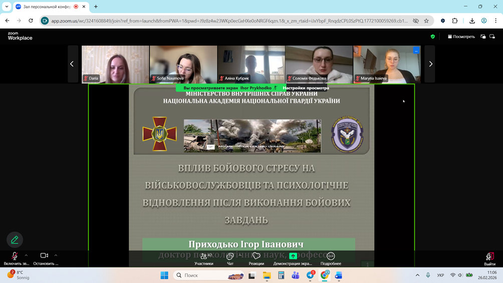 Гостьова лекція «Вплив бойового стресу на військовослужбовців та психологічне відновлення після виконання бойових завдань»